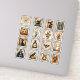 Cette feuille d'autocollants comporte 16 autocollants en vinyle découpés individuellement, chacun présentant une illustration détaillée de timbre-poste sur le thème d'Halloween, inspirée du vintage. Les dessins incluent une maison hantée, un chat noir, une citrouille sculptée, une poupée vaudou, un fantôme, un vampire, une chauve-souris, un corbeau avec citrouille, une main squelettique, une bouteille de poison, un hibou, un épouvantail, une sorcière, un squelette et une toile d'araignée. Avec des tons atténués et des images de style vintage, ces autocollants de style timbre-poste offrent une esthétique étrangement charmante, idéale pour les travaux manuels saisonniers, le scrapbooking, les agendas, la décoration de fête ou les sceaux d'enveloppe.