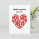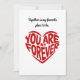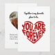 La typographie "You Are My Forever" dans un grand coeur rouge, associée au titre "Together is my favorite place to be", et une photo en forme de coeur sur le dos, Carte de Saint Valentin personnalisée. Cette carte mignonne et élégante présente un design devant un grand coeur rouge avec "Ensemble est mon endroit préféré pour être. Tu Es Ma Typographie De L'Éternel. Au fond, un message sincère et une photo en forme de coeur, tout cela peut être personnalisable pour répondre à vos besoins. Parfait pour un couple qui croit en l'amour vrai pour toujours. Les droits d'auteur explosent dans les modèles de style.