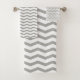 Ensemble gris à la mode de serviette de salle de bains de motif de rayure de chevron. Conception de luxe d'impression de motif de zigzag. Décor à la maison élégant pour la salle de bains, la toilette, la maison de hôtes, la couleur faite sur commande d'arrière - plan du cabine etc. facultatives. Inclut peu de lavette, petite serviette de main et grande serviette de bain. Idée actuelle élégante pour les amis, la famille, les couples, les accessoires de conception de zigzag des nouveaux mariés etc. Combinaison assortie d'impression pour l'intérieur sophistiqué.
