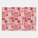 papier d'emballage en motif répétitif de cercles, coeurs, fleurs et ornements abstraits rouge bleu violet tons