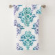 Ensemble pourpre de Towlet d'impression de damassé de gradient de turquoise. Un motif vintage classique dans métallique fascinant moderne vintage moderne élégant en joli vert bleu de turquoise. au gradient pourpre sur le blanc ou votre choix de couleur d'arrière - plan.