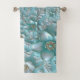 Beau ensemble de serviettes Turquoise de fleurs blanches