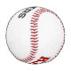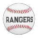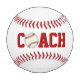 Bal de baseball blanc avec texte Coach et nom d'équipe à l'envers. Le nom, la couleur et l'année de l'équipe sont modifiables.