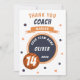 Carte d'entraîneur moderne de Merci de basket-ball. Une carte d'entraîneur moderne et personnalisée, avec un ballon de basket, le nom de l'entraîneur sur le ruban, le nom de l'équipe, le nom et le numéro du joueur. Vous pouvez modifier n'importe quel texte sur la carte.