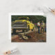 Illustration vintage de l'entreprise de l'industrie design mettant en vedette un architecte et un entrepreneur général debout à côté d'un camion de travail jaune. Les hommes à col bleu examinent les plans de construction sur un chantier de construction avant que l'inspecteur ne se présente pour signer le projet.