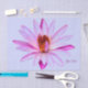 Nénuphar pourpre décoré d'un monogramme avec des couleurs d'accent d'aubergine, de bleu de bigorneau, de rose d'orchidée, et de grenadier frais. L'arrière - plan est bleu de bigorneau et le monogramme est aubergine fraîche.