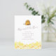 Invitation vos invités à une douce fête avec notre invitation à la douche nuptiale sur le thème des abeilles. Cette invitation est parfaite pour une douche nuptiale charmante et fantaisiste avec un beau design de nid d'abeille, des fleurs bleues et blanches délicates et des abeilles bourdonnantes. L'impression de haute qualité assure que vos invitations paraissent étonnantes et impressionnent vos invités. Personnalisez l'invitation avec vos détails, et envoyez-les à vos proches pour commencer le buzz sur votre douche nuptiale à venir.