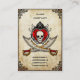 Conception de carte de visite grunge orientée de pirate. Comporter deux a croisé des épées de pirate et une illustration rouge fleurie de coeur avec un crâne.