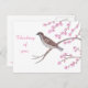 Le dessin au crayon coloré d'un moineau assis dans un arbre à fleurs de cerisier, avec Pensée de vous, est imprimé sur les cartes postales. Le texte peut être facilement customisé sur le formulaire modèle.