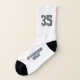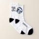 Ces chaussettes de volley-ball esprit d'équipe pour filles peuvent être personnalisées avec son nom et son numéro de maillot ainsi que le nom de l'école et le nom de la mascotte en bleu et gris dans une police de style lettre de variété - son nom est situé sur un graphique de volley-ball bleu, gris et blanc - par katz_d_zynes | voir d'autres combinaisons de couleurs d'équipe et cadeaux de volley-ball de filles dans ma collection de cadeaux d'esprit d'équipe de couleurs d'école de volley-ball >>> https://www.zazzle.com/collections/119253642051968072