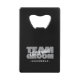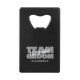 Conception personnalisée d'un ouvre-bouteille de carte de crédit pour votre enterrement de vie de garçon avec "ÉQUIPE DU MARIÉ" en caractères gras gris clair. Personnalisez le nom des garçons d'honneur en écriture blanche nette. Le titre ou le texte personnalisé est indiqué ci-dessous. Toutes les couleurs de ce design sont personnalisables dans l'outil de conception de Zazzle ! Envoyez un message pour les questions ou les demandes de couleurs personnalisées.