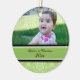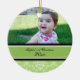 Ęr ornement de Noël du bébé personnalisable avec vos propres photos de bébé en vert élégant, motif floral classique noir et blanc de damassé. Un cadeau mémorable pour toute nouvelle maman cette saison des vacances.