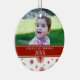 Ęr ornement de Noël du bébé personnalisable avec vos propres photos de bébé dans le motif de fête rouge et blanc élégant de flocons de neige. Un cadeau mémorable pour toute nouvelle maman cette saison des vacances.