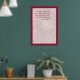 L'affiche de l'Écriture présente cette citation populaire du texte du roi Jacques : "L'herbe au fond, la fleur s'efface; mais la parole de notre Dieu se tiendra pour toujours." Isaiah 40:8 Poster présente une photo de gros plan d'un chrysanthème rouge canneberge pour imprimer à moins de saturation pour un look défraîchi. La photo est déclenchée par une mince bordure jaune doré et une bordure rouge brique plus épaisse.