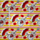 Un design fantaisiste de style rétro avec des souvenirs de vacances espagnoles, une guitare en fer forgé, un ventilateur en dentelle et une rose rouge, sur un arrière - plan décoratif rayé. Un design personnalisable en noir, blanc, rouge et jaune doré pour que vous personnalisiez avec vos propres textes, images et idées. Une image art numérique originale.