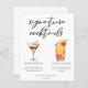 Cette feuille de menu de cocktails sophistiquée vous propose une simple typographie noire au-dessus de 2 de vos boissons préférées et de leurs ingrédients pour votre bar mariage côtier. Un élégant dessin Espresso Martini et Tequila Sunrise ajoute une touche amusante à votre menu du bar. Complétez avec les noms du couple et la date de leur réception.