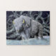 Un bison blanc regarde sagement hors de cette peinture numérique par des jms. Ce buffle sur la neige présente un défi grand aux fans de puzzle partout.