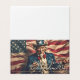 Image poétique et émouvante d'une figure patriotique intemporelle, fière devant un drapeau américain flottant, emblème de courage, de liberté et de l'esprit durable d'une nation.