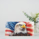 Le jour de l'indépendance des Etats-Unis, l'aigle chauve - symbole de liberté et de force - s'élève devant le drapeau des Etats-Unis. Son regard perçant et l'audacieux rouge, blanc et bleu de l'arrière - plan représentent le courage, la détermination et les valeurs historiques célébrées le 4 juillet. Cette image incarne la fierté d'une nation qui défend son indépendance.