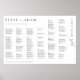 Cette affiche de tableau de sièges présente un design minimaliste moderne et une disposition alphabétique. L'en-tête de texte du script est une image qui ne peut pas être modifiée. L'image de titre peut être redimensionnée pour correspondre à n'importe quelle taille d'affiche. Tous les autres textes sont entièrement modifiables. Pour une personnalisation plus avancée de cette conception, il suffit de cliquer sur le bouton "Customiser" ci-dessus.