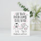 Félicitez quelqu'un pour son mariage ou son anniversaire de mariage avec cette carte unique de style lettrage à la main avec le message "Et ils vécurent heureux pour toujours. Le design comprend une illustration amusante de style craie du marié et de la mariée avec bouquet, fleurs et cœurs sur fond blanc. Espace ci-dessous pour les noms des mariés ou votre propre message personnalisé.