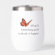 Vin tumbler avec l'image d'un monarque papillon et le dicton Que se passe-t-il si quelque chose de bon est sur le point de se produire? Rends quelqu'un heureux. Rends hommage à un ami. Encouragez-vous avec chaque gorgée. Arrêtez la pensée négative !