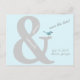 Cette carte postale "save the date" présente un oiseau bleu perché sur une esperluette. Customisez avec les détails de votre événement et vos noms.