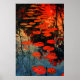 Étang de Nymphéas Rouges Impression d'Art Coucher de Soleil Abstrait Réflexion Décoration Murale
