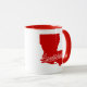 Montrez votre fierté nationale avec ces t-shirts et autres objets qui ont un contour rouge de l'état de Louisiane avec le nom à l'intérieur de la forme.