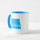 Montrez votre fierté de l'état d'origine avec ces t-shirts et autres objets qui ont un contour bleu de l'état du Dakota du Nord avec le nom à l'intérieur de la forme.