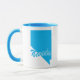 Montrez votre fierté nationale avec ces t-shirts et autres objets qui ont un contour bleu de l'état du Nevada avec le nom à l'intérieur de la forme.