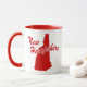 Montrez votre fierté nationale avec ces t-shirts et autres objets qui ont un contour rouge de l'état du New Hampshire avec le nom à l'intérieur de la forme.