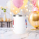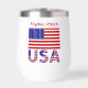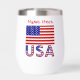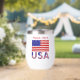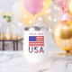 Vin thermique personnalisé avec des lettres lisant USA sous le drapeau américain. Ajoutez un nom pour personnaliser le look ou créer un cadeau pour le Jour de l'Indépendance. Le drapeau américain est rouge, blanc et bleu avec étoiles et rayures. Parfait pour les réunions de famille, les groupes de voyage et les clubs. Un cadeau amusant pour toute occasion ou événement. Beau cadeau de ménage. Le design est présenté de deux côtés.