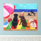 Été Breeze Labradors Impression de toile. Funny Labrador Retriever sur la plage Peinture design. Black Labrador et Chocolate Labrador et Yellow Labrador sont tous peints sur le tableau. Des chiens joyeux et mignons du Labrador Retriever s'amusent beaucoup sur la plage. Paysage d'été coloré et gai avec Labs. Peint par Naomi Ochiai du Japon.