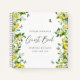 Il s'agit d'un livre d'hôtes mariage à thème botanique citron aquarelle. Le design montre des branches de citronniers estivaux, leurs fleurs blanches, des feuilles verts et des papillons florissants. Il a été inspiré par les citronniers italiens et le climat méditerranéen et conviendra à tout couple à la recherche d'un mariage d'été moderne et élégant. Veuillez contacter le concepteur pour toute modification de ce design ou pour tout produit correspondant.