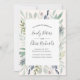 Invitation vos invités à votre mariage avec cette merveilleuse invitation avec le feuillage vert aquarelle sur un arrière - plan de couleur crémeuse et la typographie moderne lettrée à la main. Le côté arrière présente un motif floral simple. Parfait pour les mariages d'été ou de printemps à l'extérieur. D'autres points de coordination sont disponibles. Voir ci-dessous pour la collection. © Mini Moi Prints