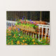 Des fleurs brillantes entourent un joli porche d'été sur ce puzzle lumineux.