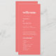 Ce programme de mariage rétro d'été rose chaud est parfait pour un mariage coloré. Le design vintage moderne et unique présente une typographie vif, rose chaud et blanc, avec des vibes super amusantes. Inclure le nom de la mariée et du marié, la date et le lieu du mariage, le message de remerciement, l'ordre de service, la fête de la mariée et un mémorial optionnel "en mémoire d'amour".