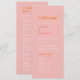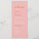 Ce programme de mariage rétro, rose et orange, est parfait pour un mariage coloré. Le design vintage moderne et unique est doté d'une palette de couleurs vives, rose vif, orange vif et rose chaud, avec des beignets de plage tropicaux amusants. Inclure le nom de la mariée et du marié, la date et le lieu du mariage, le message de remerciement, l'ordre de service, la fête de la mariée et un mémorial optionnel "en mémoire d'amour".
