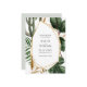 Invitation Save The Date mettant en vedette une verdure tropicale avec un centre géométrique or tendance. Parfait pour l'été et les mariages éco modernes.