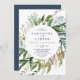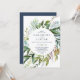 Ce faire-part de mariage décontracté verdoyant d'été est parfait pour un élégant mariage du milieu de l'été. Le design botanique présente un agencement luxuriant d'eucalyptus couleur aquarelle peint, de verdure et de feuilles verts avec de subtils ressorts de fleurs roses rousses.