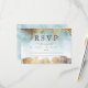 Carte RSVP mariage moderne et élégante avec peinture abstraite d'aquarelle bleue avec brosse d'or.
