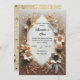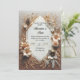 Elégante faire-part de mariage en arc de cercle, luxueuse dorée au champagne et florale blanche perle au feuillage métallique. Un arrière - plan en bronze chatoyant vient compléter le panneau central blanc avec de délicats détails en feuilles dorées, créant un parfait mélange de sophistication classique et de luxe moderne.