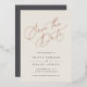 Elégant mariage enregistrer les cartes de date dans la crème douce fonctionnalité "enregistrer la date" dans luxe rose feuille d'or écriture en haut. Personnalisez avec vos détails mariages en lettres classiques au charbon de bois.