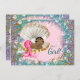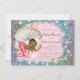 Félicitations à Mermaid pour douche bébé avec adorable sirène de bébé afro-américaine d'origine africaine dans une jolie coquille de palourde sur un beau violet, rose et bleu turquoise sous l'arrière - plan de la mer. Vous pouvez facilement customiser ces belles invitations de douche bébé sirène pour votre événement en ajoutant simplement vos détails d'événement dans le style de police et le libellé de votre choix. Il s'agit d'un design imprimé sans véritable parties scintillant, bijoux, etc.