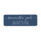 4 LIGNES Mariage moderne élégant Retourner Adresse étiquette 4 LIGNES Mariage moderne élégant Script Retourner Adresse simple étiquette en classique bleu marine et blanc typo avec couple nom de famille en calligraphie manuscrite et adresse de retour en standard classique sans serif. Idéal pour les invitations à un mariage ou à un rspv.