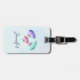 Marque de bagage avec un joli design. 3 papillons aquarelles, peints en rose, violet et vert. Un arrière - plan d'aquarelle bleu clair avec des touches de rose clair.