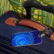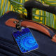 Bleu abstrait marque à bagages design coque avec emplacement carte de visite.