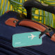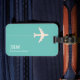 Un article élégant avec une image graphique d'un avion blanc sur arrière - plan turquoise (couleur personnalisée)... pour identifier vos effets personnels lors d'un voyage dans le monde