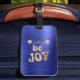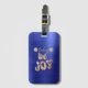 Balise de bagages d'affirmation inspirante. Faux bleu saphir métallique avec une typographie inspirante et rétro qui dit : "aujourd'hui, soyez la joie". Modèle floral rétro. Citation de la boutique Vie de Vikkelynn Designs & Co.